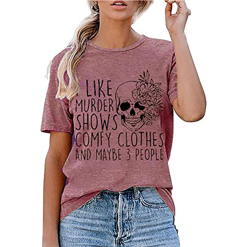 - 🎃Material: Horror skull graphic shirt- I like murder shows , the cotton material is light and breathable, and it feels comfortable to the touch. Vintage cool skull graphic pattern to show your personality. Wearing it will receive more compliments for casual women’s novelty T-shirts.