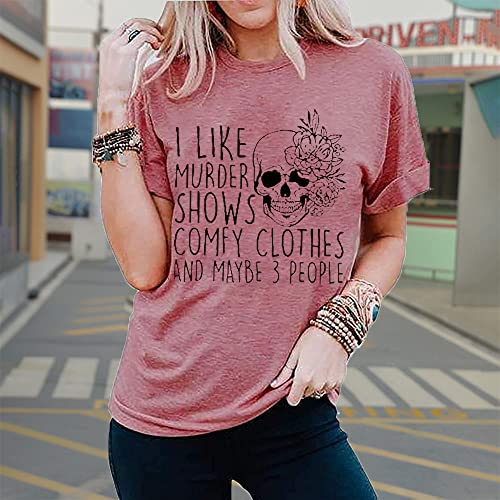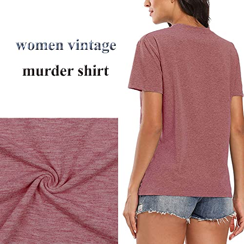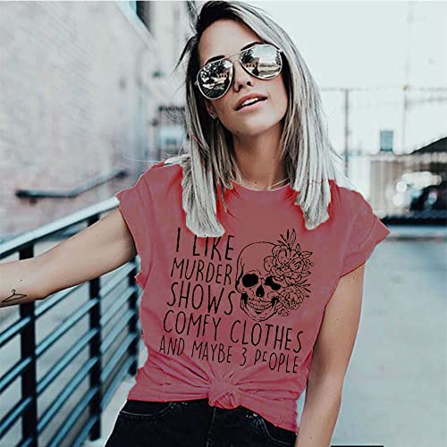 Horror Women Shirt Maybe 3 People Novelty Friend Graphic I Like Murder Shows Summmer Beach Top Short Sleeve Tee, Red