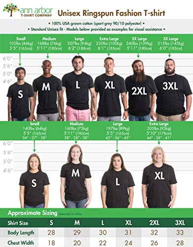 - UNISEX MODERN FIT SIZING | this shirt is slightly tapered to be a little less boxy than the old style of mass-market t-shirt. Nothing drastic, and most people wear the same size in our shirts as they do in all of their others, but you might go one size larger if you're on the fence. It is pre-shrunk, but like any high-cotton product, will still shrink slightly in the wash. Our model photos are the real thing - the actual shirt on our salesguy, Rich. He's 6' 2", 200 lbs and wearing a large