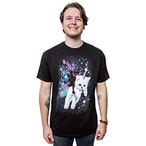 Marvel Deadpool Space Trip Unicorn Kitty Adult T-Shirt (Medium, Black)