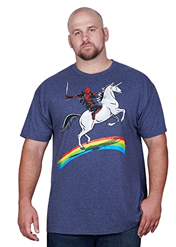 Marvel unisex adult Deadpool Riding a Unicorn on Rainbow T-shirt novelty t shirts
