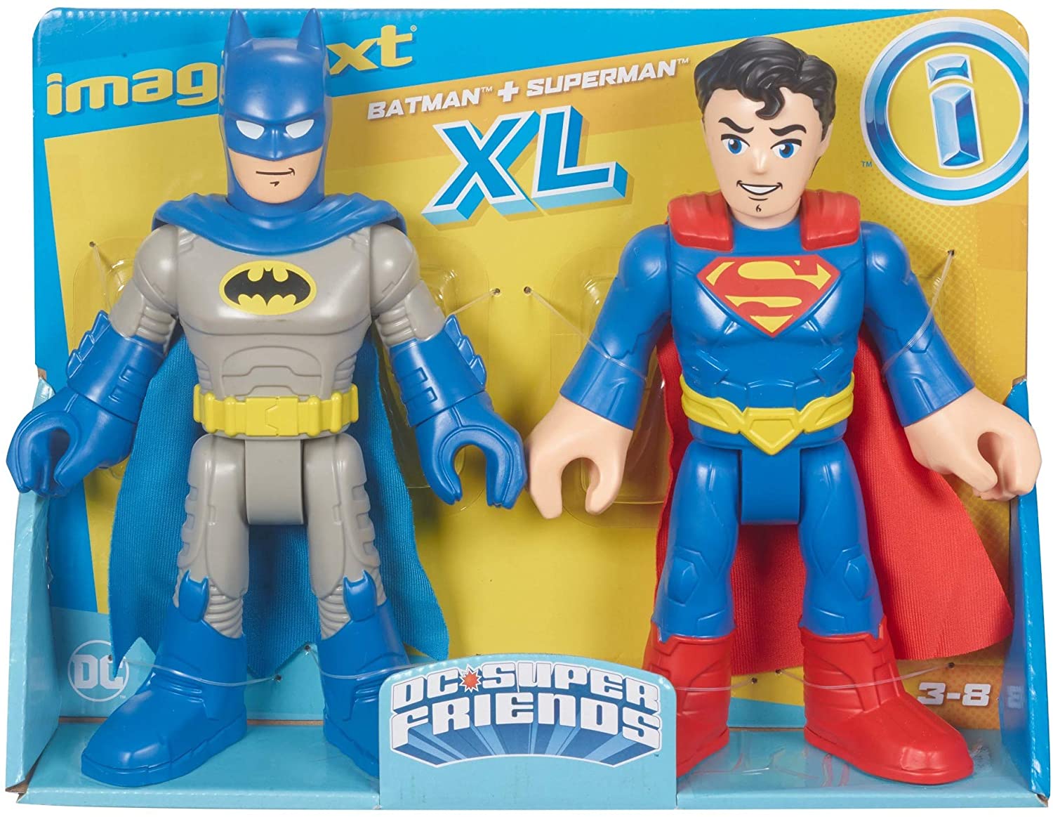 Whether it's Lex Luthor, The Joker, or the cat wreaking havoc, preschool kids can battle all the big-time baddies with these super-sized Imaginext DC Super Friends Superman XL and Batman XL figures from Fisher-Price. Reaching approximately 10 inches tall with fabric capes and fully movable necks, shoulders, legs and wrists, these extra-large Super Hero figures let young crimefighters act out the most epic adventures. Imaginext Imagine What's Next!