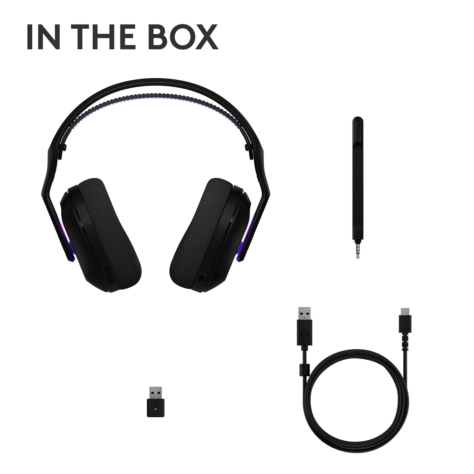 Logitech G522 Lightspeed Wireless Gaming Headset, LIGHTSYNC RGB, Full Bandwidth Mic & Advanced Synchronized Audio, Tri-Connectivity with Lightspeed, Bluetooth, USB-A to USB-C for PC - Black
