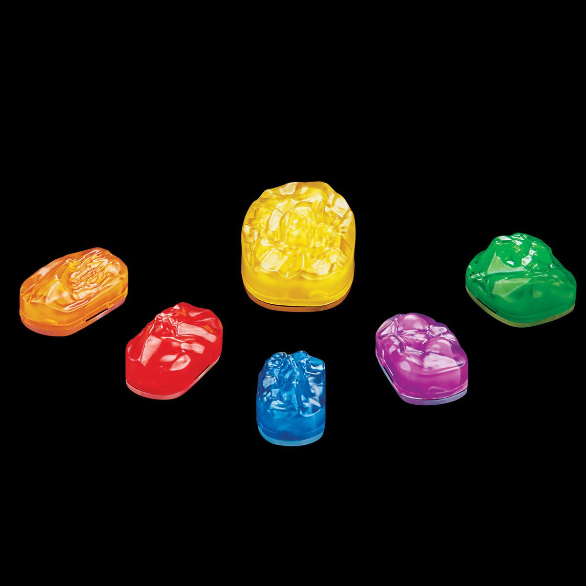 - PULSATING STONE GLOW LIGHT EFFECTS: Infinity Stones feature pulsating glow light effects in red, purple, blue, orange, yellow, and green