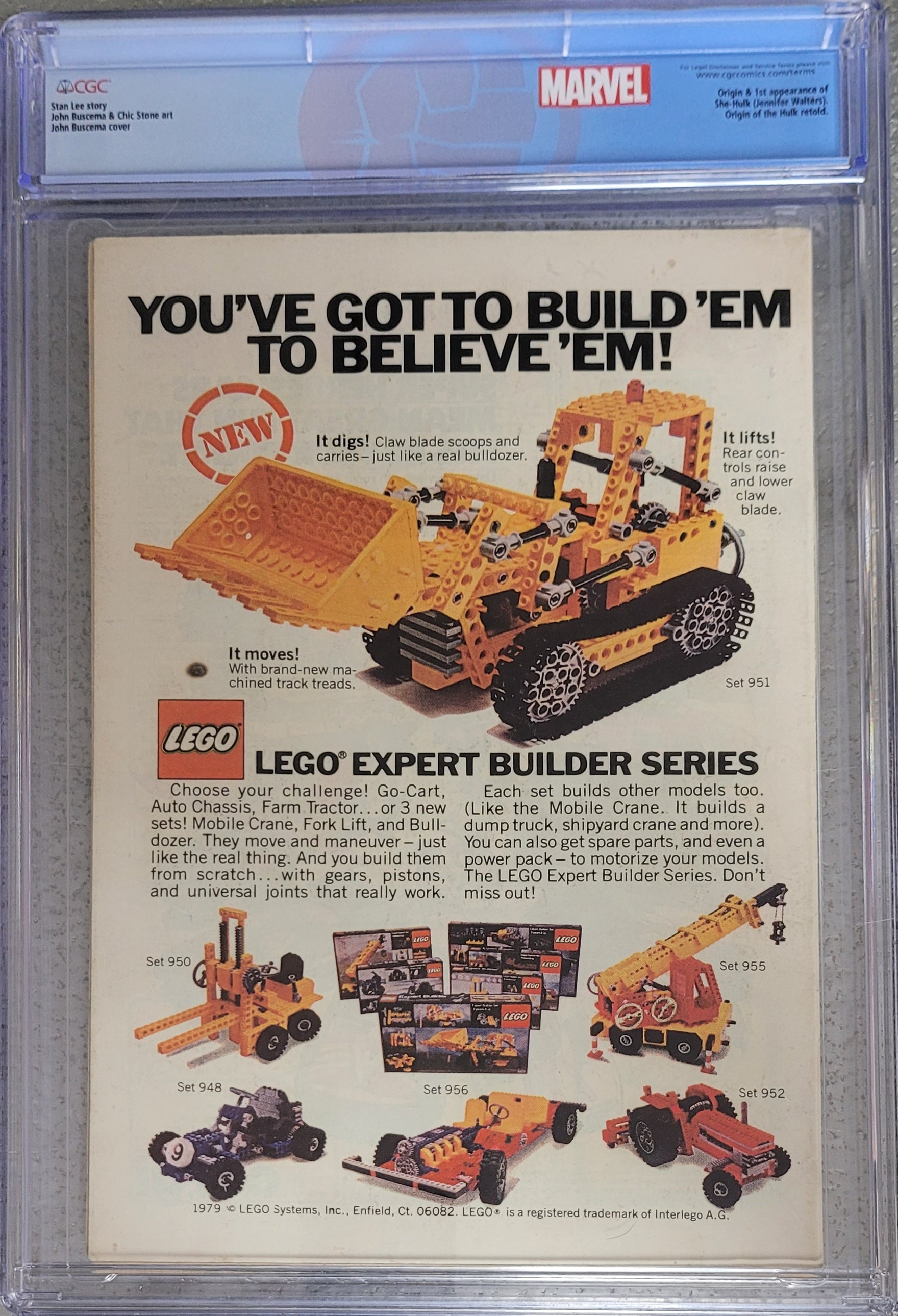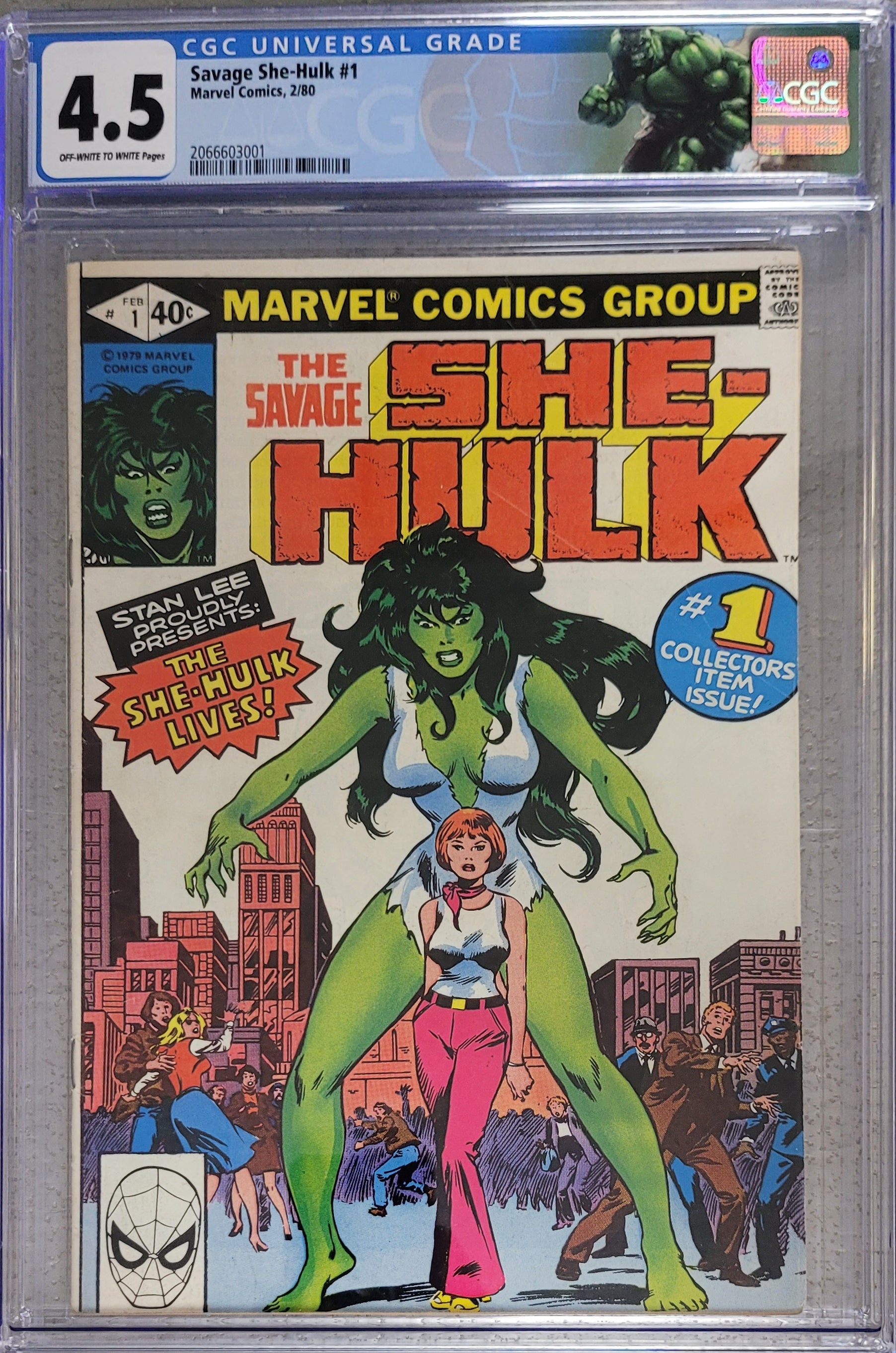 1st appearance and origin of the She Hulk. "The She-Hulk Lives!" Guest-starring Bruce Banner. Story by Stan Lee. Art by John Buscema and Chic Stone. Jennifer Walters is on the verge of death after an attempted assassination, and the only thing that will save her life is a blood transfusion from her cousin, Bruce Banner...AKA the Incredible Hulk! His gamma-irradiated blood sparks a startling transformation in his cousin, and she will forevermore be known as the Savage She-Hulk! Cover price $0.40.